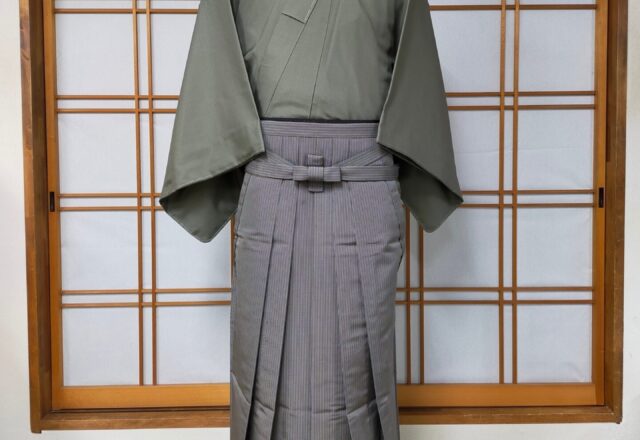 今日は無地お召に袴のご紹介 だいやすでは茶道、華道、香道の他、邦楽、能楽、日舞、落語など芸事、 弓道、居合などの武道等たくさんのお稽古を嗜むお客様がいらっしゃいます そんなお客様がお使いやすい無地のお召、袴も多数ご用意しています お茶事をイメージしてコーディネートをしてみました 梨地のお召に縞の馬乗り袴 白足袋が引き締って着姿を引き立てます このコーディネート…