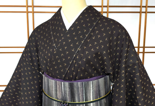 小紋では珍しい紬のような絣柄、 カジュアルの中にやわらか物のエレガントさがあります。 帯をシックに合わせて大人コーデでお出かけください。 紅葉が美しくなるこの時季、 さりげない装いでバッチリです!! ...続きを見る