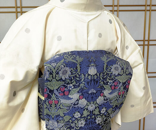 今回はいちごの時期にぴったりの名古屋帯のご紹介です。 こちらはイギリスのデザイナー、ウィリアムモリスの代表作の一つ「いちご泥棒」の帯。 紺青の地に鳥がいちごをついばむ様子がしっかりと織り出されています。 シンプルな白大島を合わせた、上品で可愛らしいコーディネートです✨ これからのいちごの季節、いちごの帯を身につけてお出かけしてみるのも素敵ですね🍓 こちらはだいやす ...続きを見る