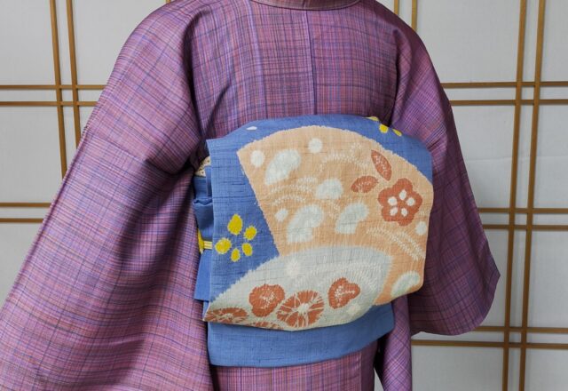 寒い季節は濃いめの色でコーディネートがしたくなります。 その中でも今日は鮮やかな紅紫色の小紋を選んでみました♪ 手描きのような刷毛目文の緩急のある、ゆらぎのあるラインが どこか素朴でやわらかな染め上がりのお着物です。 ブルーの名古屋帯も紬地に絞り染めなのもあって こちらも同じく素朴でやさしい印象。 可愛いけどどこかやわらかい、そんな雰囲気で合わせてみました。 絞りで染め出 ...続きを見る