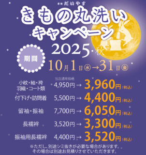 秋のきもの丸洗いキャンペーンを開催します🍁