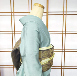 今回のマネキンさんは、単衣色無地に箔屋さんの袋帯です。