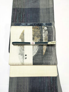 こちらの大島には渡文の袋帯を合わせました。 繊細な金銀糸を随所に織り込んだ洒落袋帯が大島の金糸と相まって、大人なお出かけを演出してくれます。 もう一つ大島紬をご紹介。