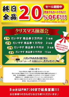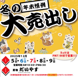 今年も年末恒例だいやす冬の大売り出しを開催します!!