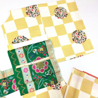 市松に丸に梅柄小紋