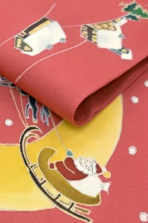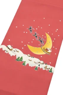 大きな三日月とプレゼントを運ぶサンタたちが目を惹く