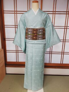 シックなお色の横段地に織り出された花唐草文がおしゃれで素敵です😊