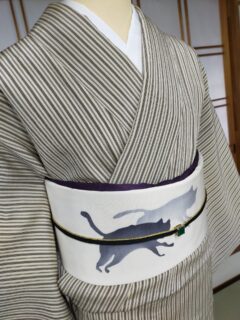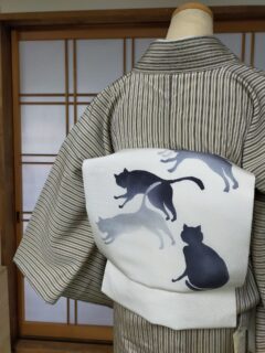 今回のコーディネートは猫のシルエットが特徴的な名古屋帯。