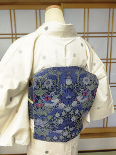 こちらはイギリスのデザイナー、ウィリアムモリスの代表作の一つ「いちご泥棒」の帯。