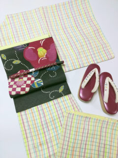 今日のコーディネートは、手描きのような格子文の小紋です。