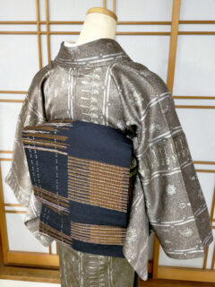 帯は織りの横縞にちょうど良い塩梅で金糸を使っていますので、