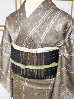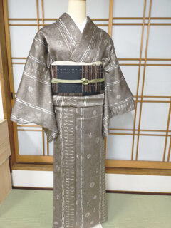 今回のお着物は、おしゃれな小紋にカジュアルな作り帯を合わせてみました。