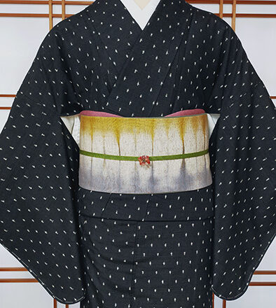 急に朝晩寒くなり一気に秋の気配の京都です。 街路樹の銀杏も色付き始め、いよいよ本格的な紅葉シーズンがやって参ります。 お着物をお召しになり京都紅葉散策。 気候的にも目に鮮やか的にも最高な季節到来です。 そんな季節到来に合わせてのコーディネートのご紹介。 先日、秋コーデをご紹介いたしました、黒地に絣柄を染めた珍しい小紋。 今回のお着物も同じお着物に見えますが、こちらは真 ...続きを見る