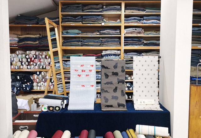 着物や帯を見ていただくショールームがございます。