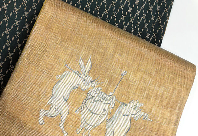 シックな小紋に合わせたのは 鳥獣戯画文の洒落袋帯。 鳥獣戯画は日本最古の漫画ともいわれる 着物通のなかでも特に人気のあるお柄です。 大人のかっこいいをイメージして コーディネイトしました。 こんなコーディネイトで おでかけをしてみたいですね。 お着物 15,400円 袋帯 22,000円 お着物サイズ 身丈(肩から)167.5㎝ 裄 68㎝…
