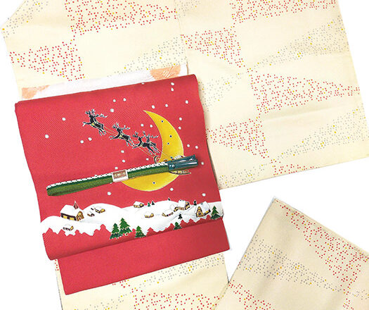 今日は季節帯を合わせたコーディネートです♪ 大きな三日月とプレゼントを運ぶサンタたちが目を惹く 色もデザインもなんてクリスマスらしい帯! 赤、黄色、グレーのドットで描かれた幾何学模様の小紋と合わせて ちょっとポップな装いに。 ガラッとイメージを変えて濃い色の着物も赤色が映えますし、 小物を変えて違う雰囲気も色々楽しめると思います✨ 季節帯は毎年絶対楽しめて…